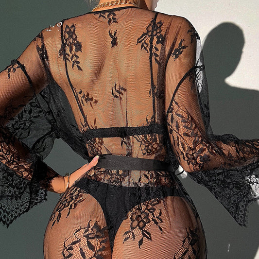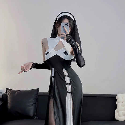 Mystique Lace-Up Bodysuit with Veil and Thigh Straps VV77094